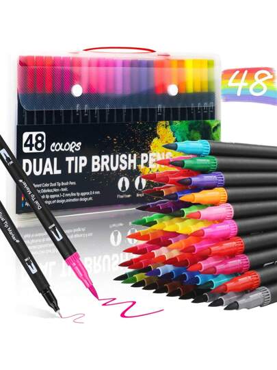 48marcadores de color doble punta varias puntas de color acuarela cómic caligrafía arte pen set highlighter con bolsa de transporte de nuevo a la escuela suministros niños niños niñas dibujo de pintura caligrafía adulto construcción pen set de art comic-1 - Cantidad - Añade 5