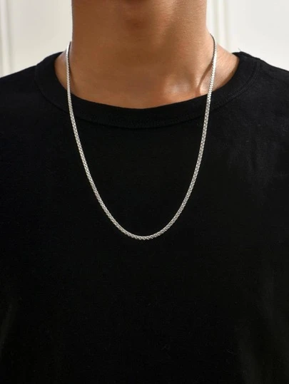 1 collar minimalista de acero inoxidable a la moda para hombre para decoración diaria, para regalo de joyería y fiesta - Plateado - Añade 1