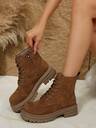 Nuevas botas para mujer, botas cortas de otoño adecuadas para vestidos cortavientos, estilo británico con suela gruesa y media pantorrilla, con cordones retro, ojetes metálicos y cremallera lateral, casuales
