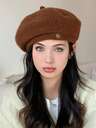 1 pieza Boina para mujer de un solo color con estrella de cuatro puntas, estilo clásico coreano, moda casual, transpirable y cómoda, adecuada para el uso diario, viajes, senderismo, fiestas, playa, cafeterías, vacaciones, uso artístico, primavera/verano