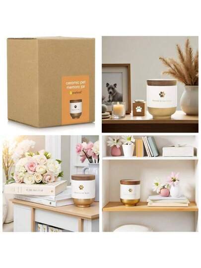 Pet Ceramic Forever in Our Hearts Urn, Pet Memorial, Gold - Aire - Añade 6
