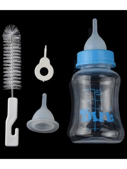 BIBERON MAMILA PARA GATO/PERRO RECIEN NACIDO SET 6 PIEZAS CON CEPILLO DE LIMPIEZA - Azul - Añade 1