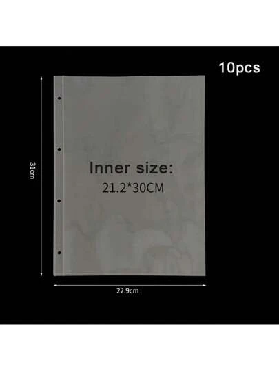 Álbum de fotos A4 transparente, 10 piezas, recarga de páginas, Protector de archivos, 4/11 agujeros, 6 * 4, 8 * 10, 4/11, carpeta de anillas, fototarjetas, tarjetas postales, cuaderno OLGX - 4 agujeros - 1 bolsillo 10 piezas - Añade 9