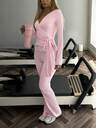 Conjunto de dos piezas de ropa deportiva casual de otoño estilo Y2K para mujer: camiseta de manga corta y cuello redondo de unicolor, y pantalones rectos de pierna estrecha