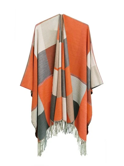 Chal con patrón de cuadros bajo con fleco - Multicolor - Añade 1