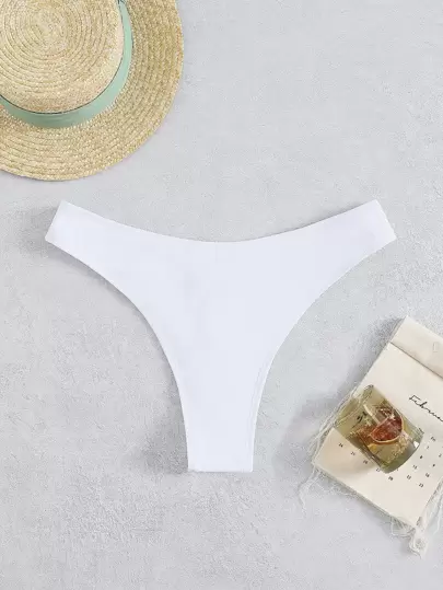 SHEIN Swim Bottom de bikini liso corte alto - Blanco - Añade 1