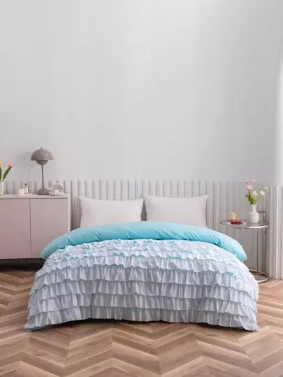 Funda duvet ribete con fruncido unicolor sin relleno - Azul - Añade 3