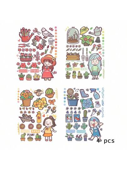 Plantas De Personajes De Planetas Pegatinas De Flores Y Plantas - Bronce - Añade 4
