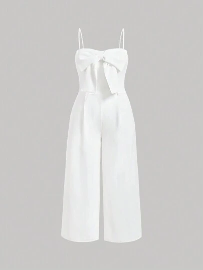 SHEIN MOD Talla grande Mono de tirantes con lazo grande delantero - Blanco - Añade 1