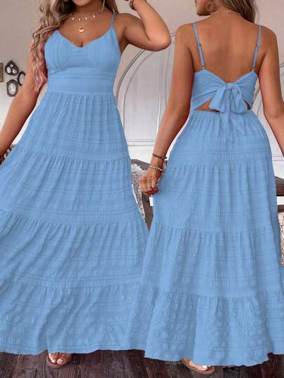 SHEIN Clasi Vestido de tirantes bohemio con espalda descubierta, dobladillo con volantes para outfit de verano de mujer talla grande - Azul - Añade 1