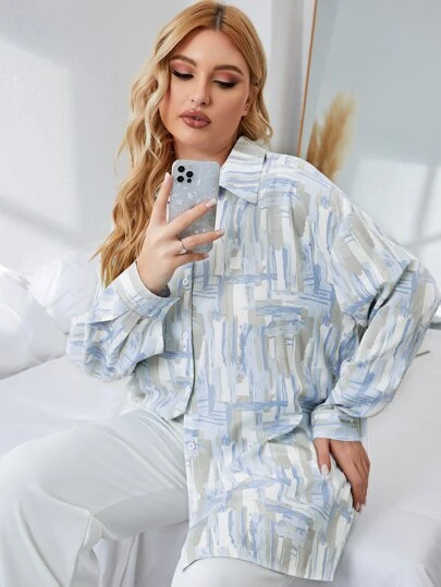 SHEIN Franclia Blusa con estampado de pincelada de hombros caídos - Multicolor - Añade 1