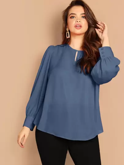SHEIN Clasi Blusa con botón puño bajo curvo - Neblina azul - Añade 5
