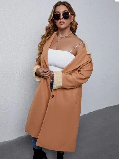 SHEIN LUNE Abrigo ribete en contraste de cuello con solapa con bolsillos oblicuos - Caqui - Añade 3