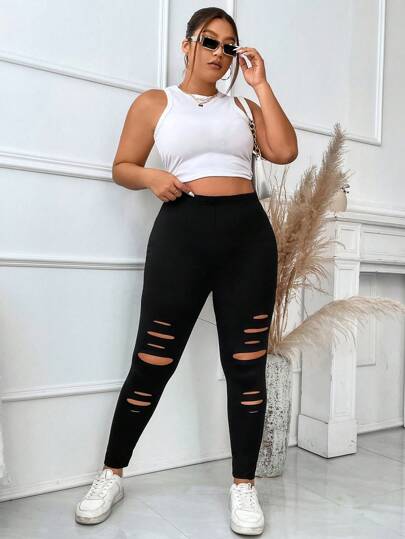 Flirla Leggings con abertura delantera - Negro - Añade 6