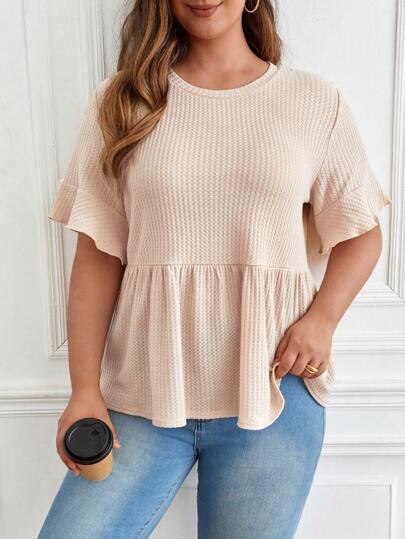 SHEIN Frenchy Talla grande Camiseta de manga con volante peplum - Albaricoque - Añade 5
