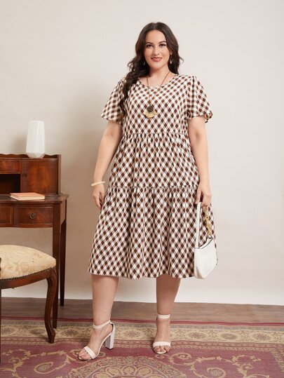 EMERY ROSE Vestido de guingán bajo con fruncido - Multicolor - Añade 3