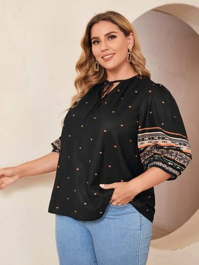 SHEIN Top de cuello con cordón con estampado de corazón - Negro - Añade 2
