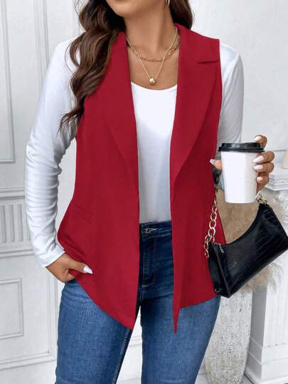 SHEIN Unity Chaleco blazer de cuello solapa y apertura frontal talla grande para ropa de Año Nuevo - Rojo - Añade 7