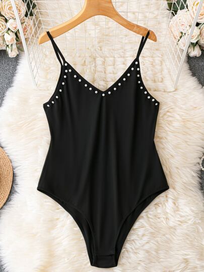 Calvaya Body de tirantes con cuenta de perla - Negro - Añade 1