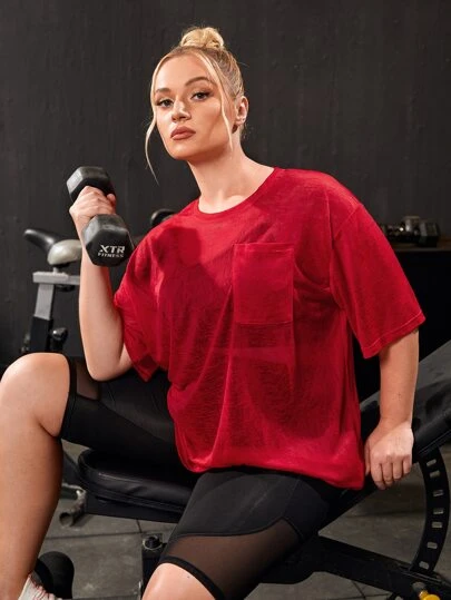 Top deportivo con bolsillo delantero de hombros caídos unicolor - Burdeos - Añade 4