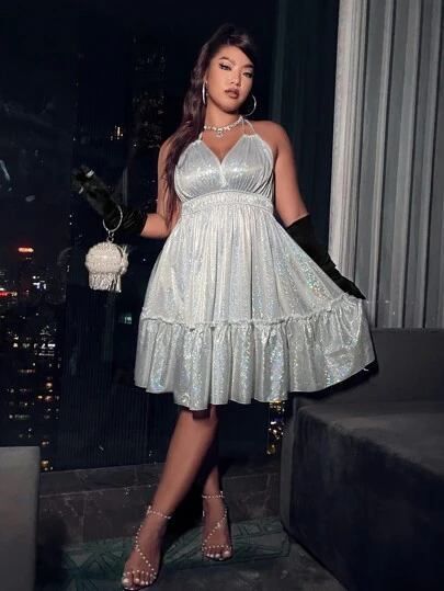 Vestido de tirantes bajo con fruncido de espalda abierta con cordón - Plateado - Añade 1