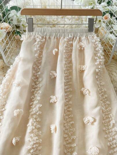 SHEIN Unity Falda elegante de talla grande con detalle de volantes en textura de jacquard francés - Albaricoque - Añade 5