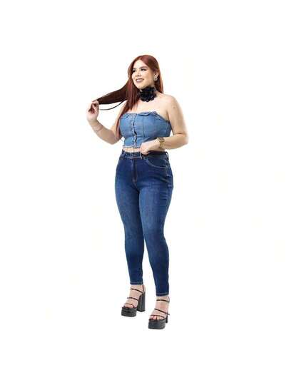 Jeans Curvy Skinny Pantalon Talla Grande Ajustado - Azul - Añade 1