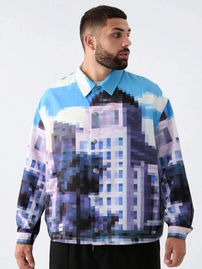 Manfinity VCAY Chaqueta tejida ajustada para hombre de talla grande con estampado de píxeles, adecuada para otoño, para otoño e invierno - Azul - Añade 1