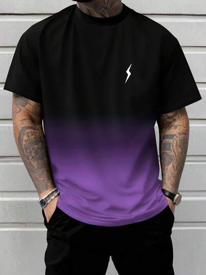 Camiseta de manga corta de cuello redondo con estampado de relámpago degradado para hombres de talla grande - Morado - Añade 1