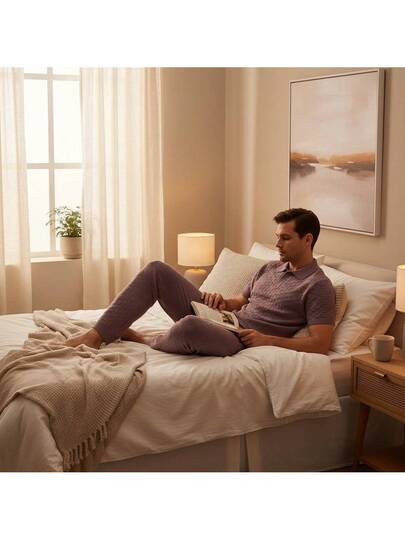 Camiseta De Descanso Para Hombre Tejida Con Detalle en Cuello - Rosa Oxidada - Añade 1
