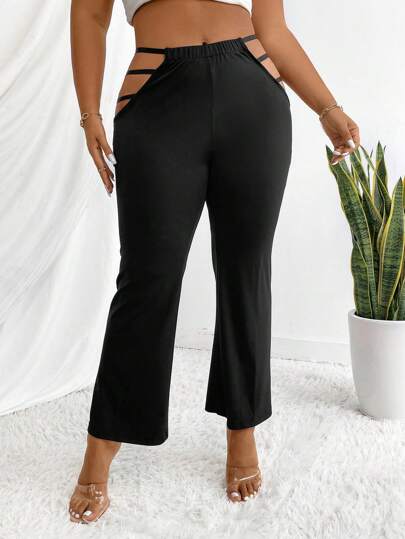 Maweii Pantalones Acampanados unicolor De Cintura Alta Para Mujeres De Talla Grande Con Corte - Negro - Añade 3