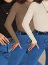 SHEIN LUNE 3 piezas Suéter de talla grande de unicolor, ajuste delgado, casual y minimalista, para otoño/invierno