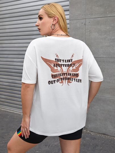 Flirla Camiseta de hombros caídos con estampado de slogan - Blanco - Añade 1