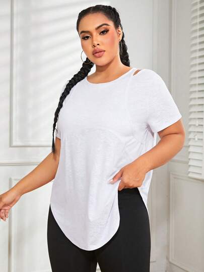 Easithlete Talla grande Camiseta deportiva unicolor con abertura bajo curvo - Blanco - Añade 2
