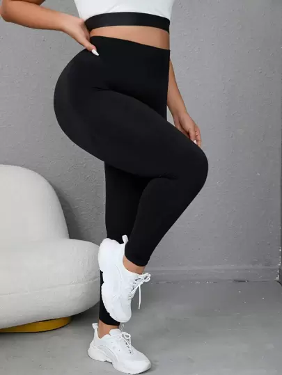 SHEIN Yoga Basic Leggings deportivos unicolor control de barriga - Negro - Añade 4