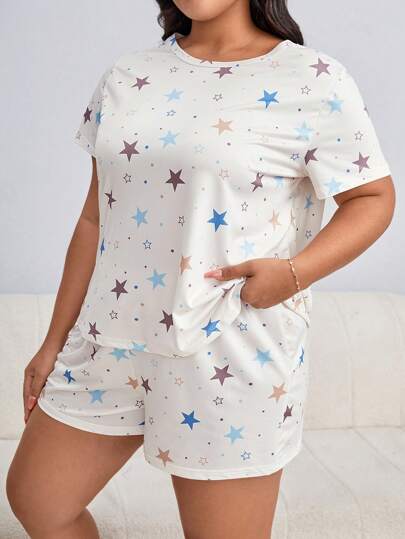 Conjunto de pijama shorts con camiseta con estampado de estrella - Blanco - Añade 3