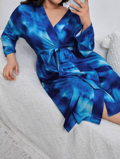 Bata con cinturón de tie dye - Azul - Añade 3