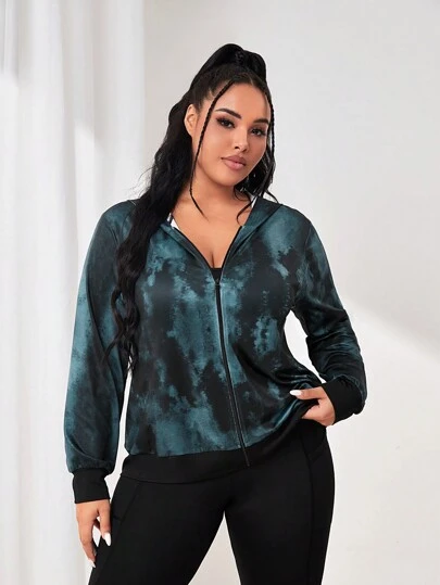 SHEIN Sports Talla grande Cazadora de tie dye con cremallera con capucha - Multicolor - Añade 2