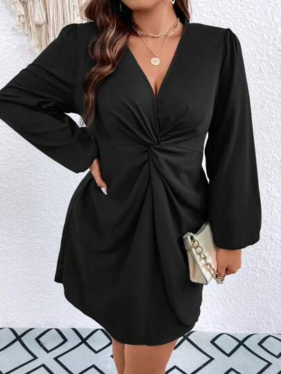 SHEIN Clasi Talla grande Vestido girante delantero de manga farol - Negro - Añade 5