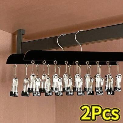 Percha para pantalones con 10 pinzas para la ropa, organizador de armario que ahorra espacio para sombreros, corbatas, cinturones, ropa interior, faldas, almacenamiento portátil para dormitorio en casa EFQD - Negro-2 piezas - Añade 12