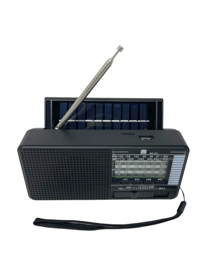 Radio Portatil Am Fm Sw Bluetooth Usb Tf Solar Lampara Led - Negro - Añade 3