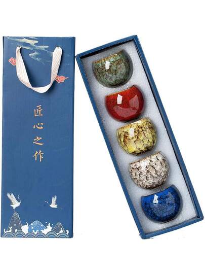 Juego de 5 tazas de té de cerámica con caja de regalo diseñada, 5 colores elegantes - B-5 - Añade 1