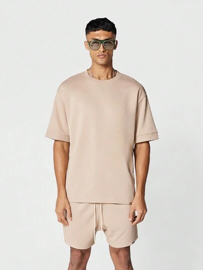 SUMWON Conjunto De 2 Piezas De Camiseta Extragrande Y Short De Peso Pesado De Alta Calidad - Albaricoque - Añade 1