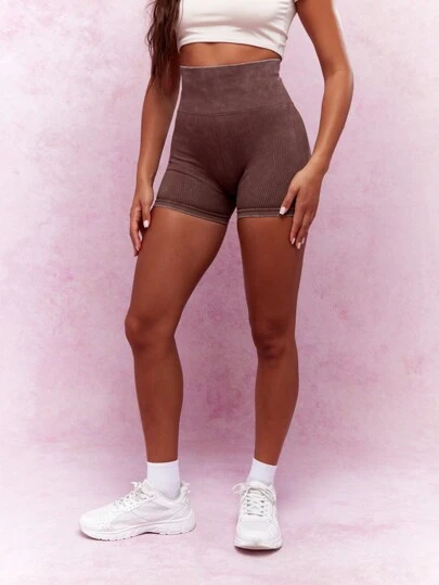 MISSGUIDED Pantalones cortos de running de cintura alta acanalados con logo impreso - Marrón - Añade 1