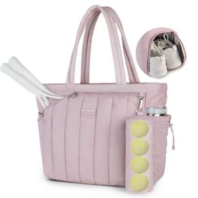 Quilted Tennis Tote Bag for Women Gym Duffle Bag with Shoe Compartment and Wet Pocket Fits 2-4 Rackets and 15.6" Laptop Overnight Weekend Sports Bag with Fence Hook - Rosa - Añade 1
