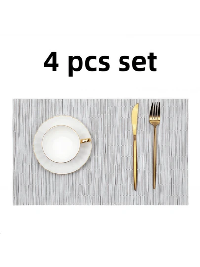 Rectangular Bamboo Festival Western Placemats - Gris-Blanco - Juego de 4 piezas - Añade 4