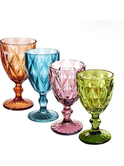 Vasos de vino de plástico reutilizables con un patrón en relieve único, duraderos, de alta claridad, adecuados para bodas, fiestas y bares - Multicolor - Añade 4