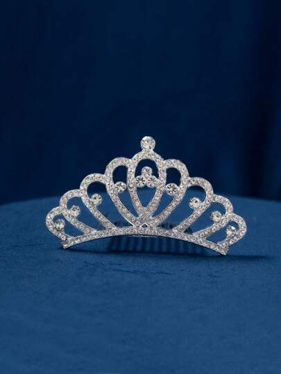Pasador de pelo con diadema de novia brillante con cristales, tiaras reales para Halloween - Plateado - Añade 1