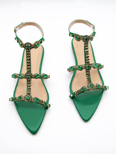 Sandalias glamoroso fiesta cómodas para mujer, decoración de diamantes de imitación, artificial, puntera abierta, sandalias con correa en el tobillo - Verde - Añade 2