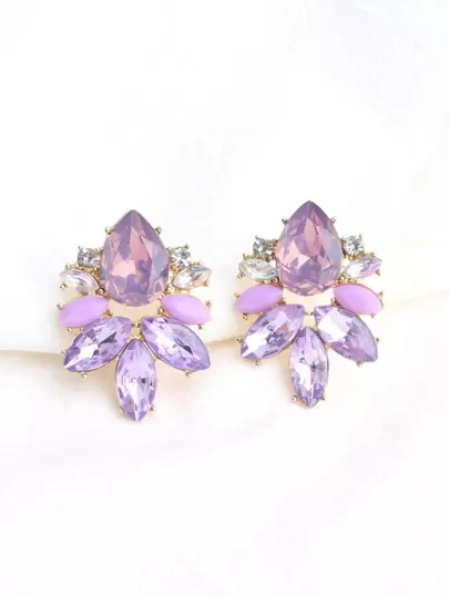 Pendientes de tachuela con diseño de diamante de imitación - Púrpura malva - Añade 10